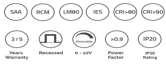- CRI: Ra≥80, Ra≥90