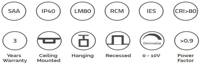 • 0 – 10V / Triac / Dali Dimmer Options